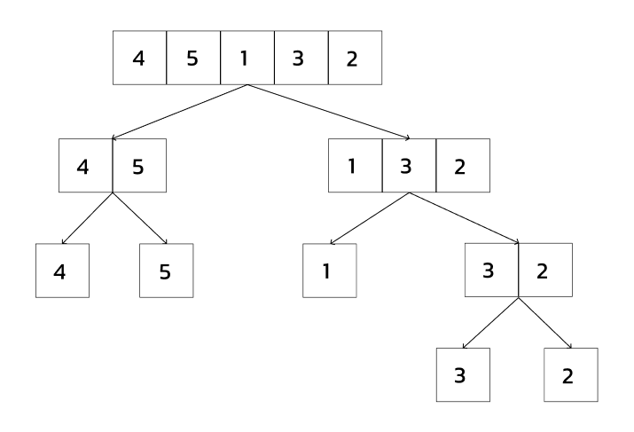 가장 먼저 파생 배열인 [ 3 ] 과 [ 2 ] 가 병합되는 과정으로 이해해보자.