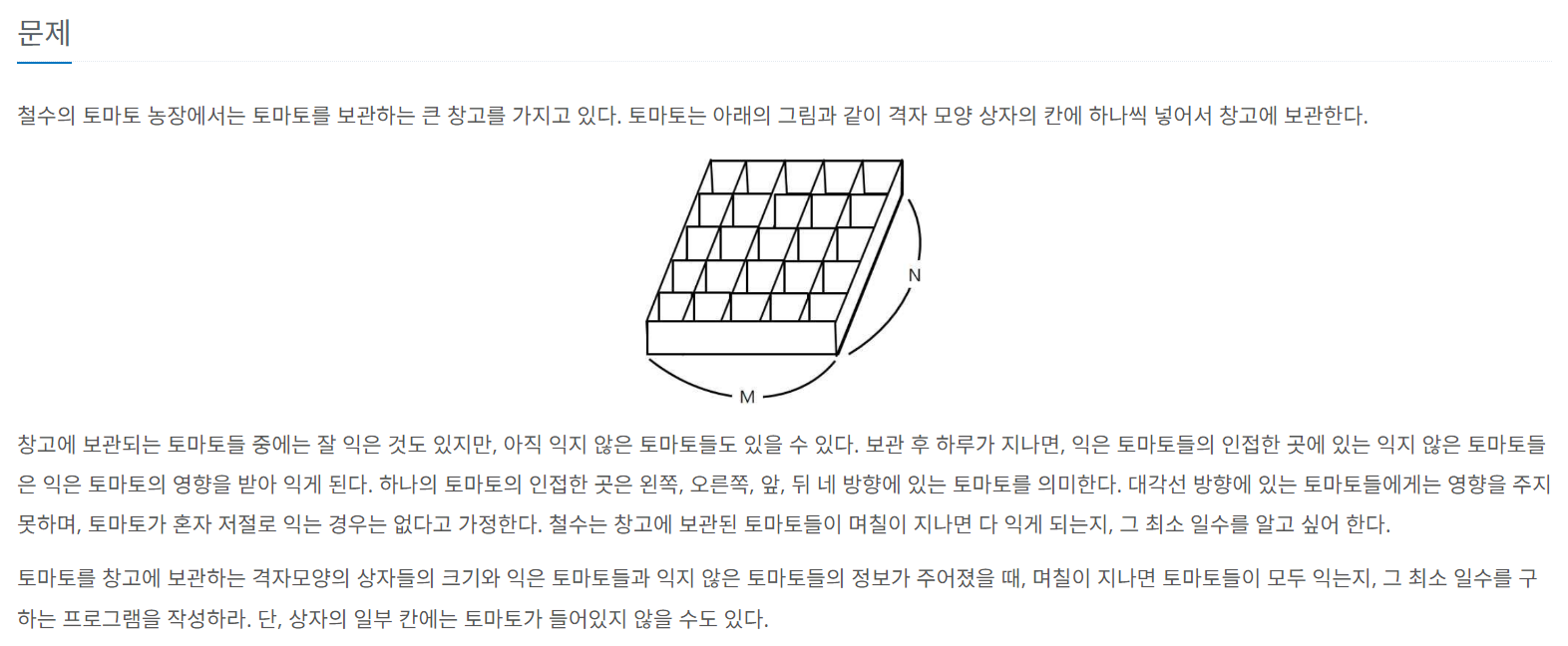 토마토는 BFS의 대표 문제들 중 하나입니다. 만약 BFS 혹은 그래프 탐색 자체에 대한 지식이 부족하다면 아래 링크를 참고하시길 바랍니다.