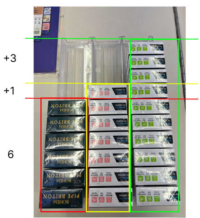 본인은 편의점 알바를 하고있습니다. 그리고 저는 항상 출근하면 가장 먼저 담배 재고를 조사합니다. 담배를 꺼내 세다보면 맨 오른쪽처럼 10개가 넘어가는 재고들이 종종 있는데, 이런 경우에는 한눈에 몇개인지 들어오지도 않고 이런 것들을 하나하나 다 세다보면 재고 조사에 쓰는 시간이 꽤 길어집니다. 그렇다고 대충 눈대중으로 세고 넘어가기에는 여간 찝찝한게 아니죠.