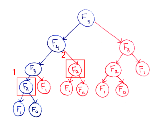 단순히 재귀함수로 Fibonacci 수열을 구현했을 때는 위 트리 구조와 같이 값을 구하는데 불필요한 중복된 호출이 발생합니다.