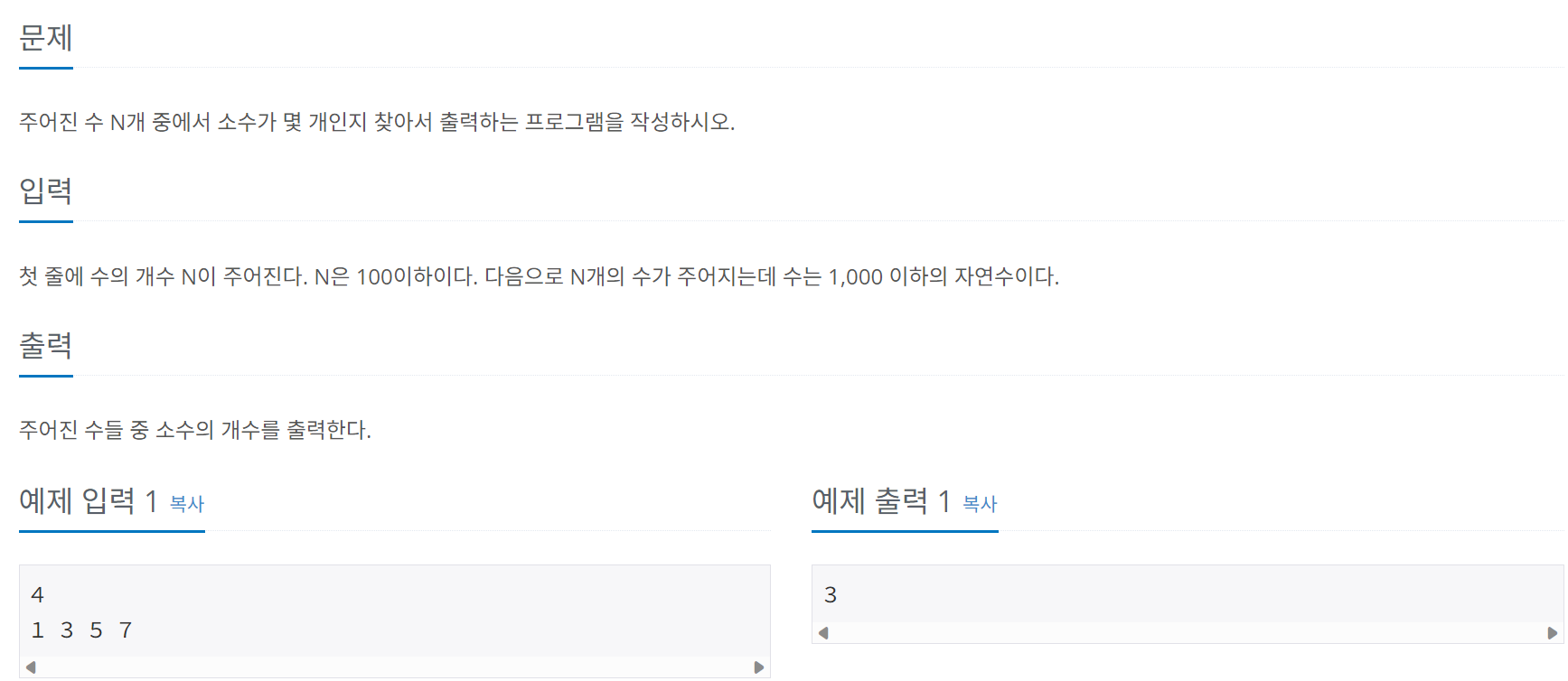 2. 입력받은 수들 중에서 소수로만 이루어진 배열에 값이 포함되어 있지 않은 수는 개수로 세지 않는다.